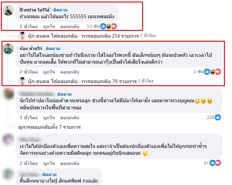 โดย ก้อง เข้ามาคอมเมนต์ว่า “อย่าไปใส่ใจเลยน้องชายถ้าวันนึงเรามาใส่ใจอะไรพวกนี้ มันเล็กๆน้อยๆ มันจะปวดหัว เอาเวลาไปปั่นหุ่น มาถอดเสื้อ ให้พวกที่ไม่สามารถเอาxึงเป็นผัวได้เสียใจเล่นดีกว่า”