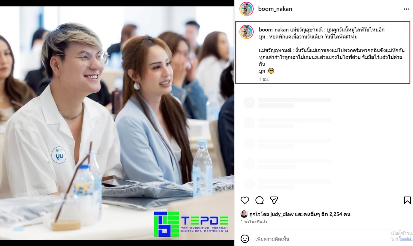 บูม : หยุดพักแค่เมื่อวานวันเดียว วันนี้ไลฟ์ค่ะ 1 ทุ่ม