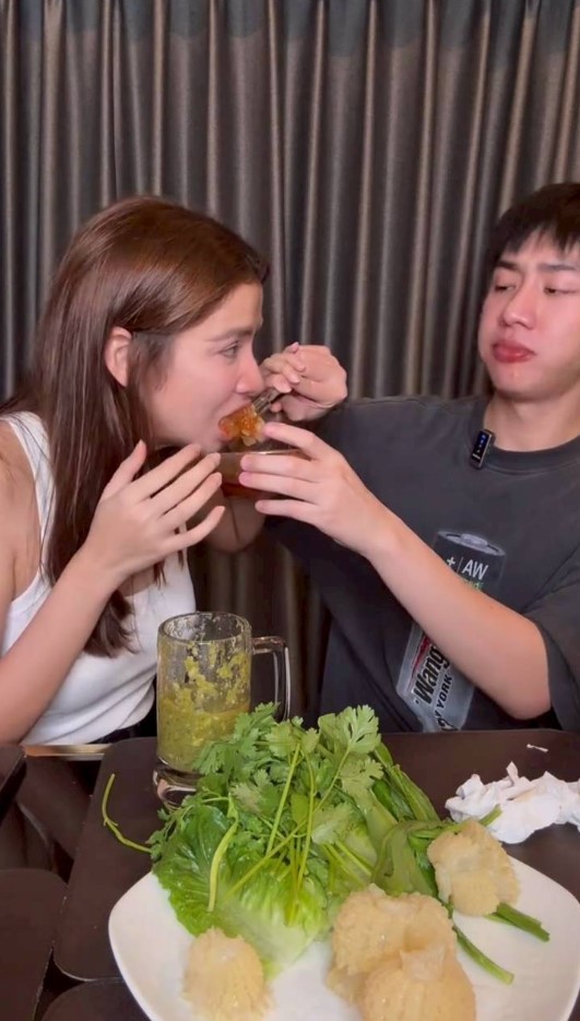 หลังรีวิวกินแมงกะพรุนหัวกระสุนด้วยกัน ซึ่งก็มีทั้งการป้อน การเช็ดปาก