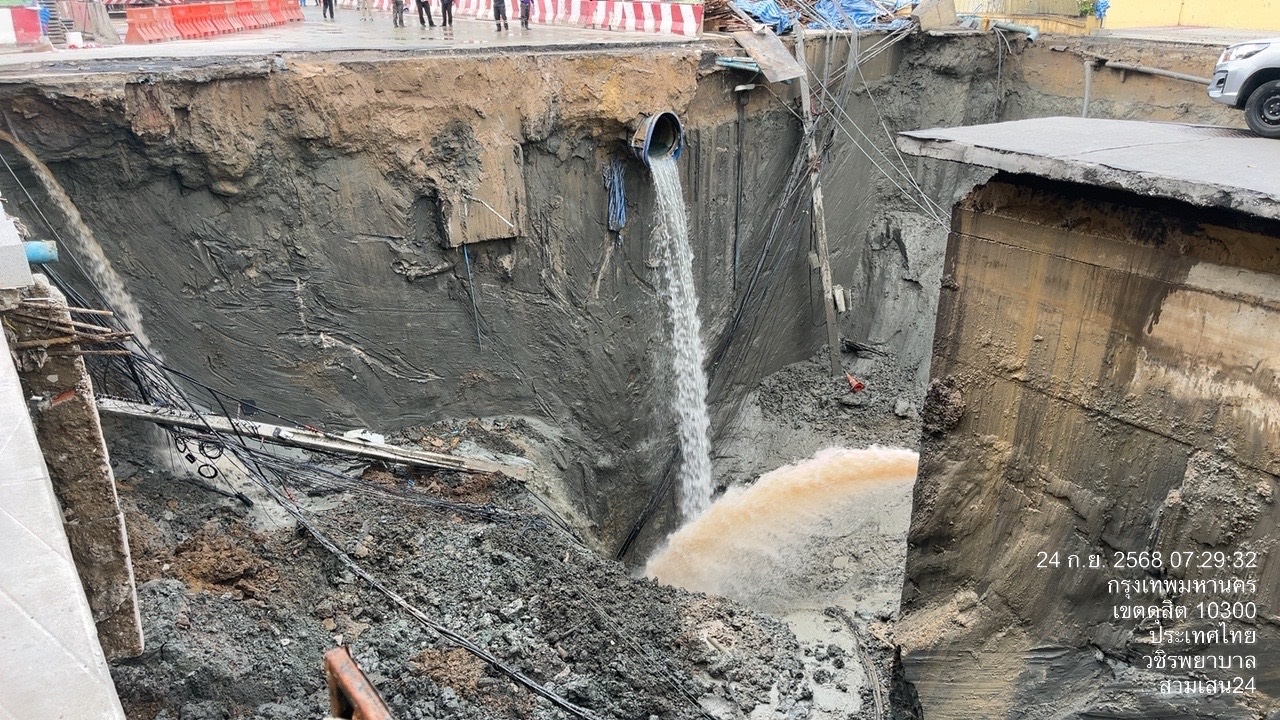 จากการก่อสร้างรถไฟฟ้าใต้ดิน วันที่ 24 กันยายน 2568 เมื่อเวลาประมาณ 07.13 น. ซึ่งขณะนี้ทางคณะฯ ได้มีการประเมินสถานการณ์