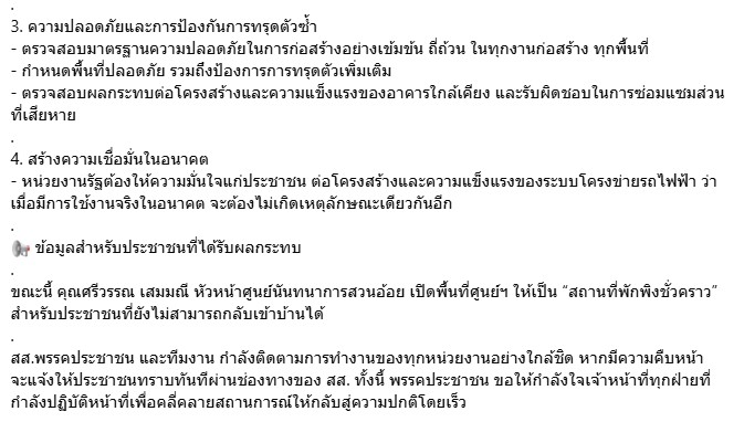 – อัปเดตข้อมูลที่ชัดเจนและความคืบหน้าให้ประชาชนทราบเป็นระยะ และมีช่องทางให้ประชาชนสอบถามข้อมูลได้