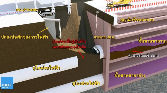 ค่อนข้างติดใจว่าอุโมงค์พังได้อย่างไร เพราะปกติแล้วแข็งแรงมาก ก็ต้องติดตามการสืบสวนหาสาเหตุกันต่อไปครับ อ้างอิงข้อมูลขนาดโครงสร้างสถานี ความลึกของแต่ละชั้นจาก TOR โครงการรถไฟฟ้าสายสีม่วง