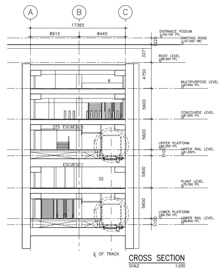 เป็นคอนกรีตกำแพงกันดินของสถานีรถไฟฟ้า กำแพงกันดินจะเป็นเหมือนกล่องที่อยู่ใต้ดิน แล้วภายในกล่องก็เป็นสถานี มีชานชาลา มีรางรถไฟ