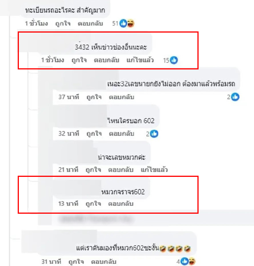 ส่วนเลขทะเบียนที่หลายคนแห่ถามหานั้นก็มีผู้รู้มาตอบให้แล้วว่า ทะเบียน 3-4-3-2 และเลขหมวกของ ร.ต.อ.รัชฏ์วิทย์ ที่ตกลงไปด้วยนั้นหมายเลข 6-0-2