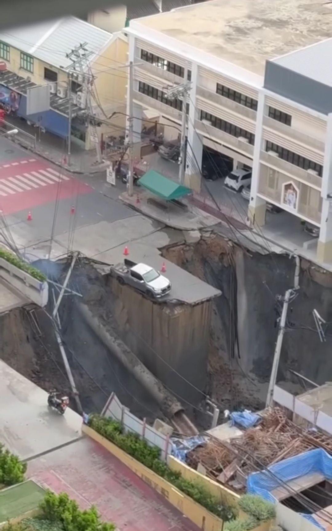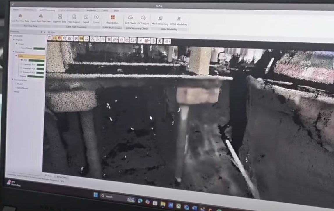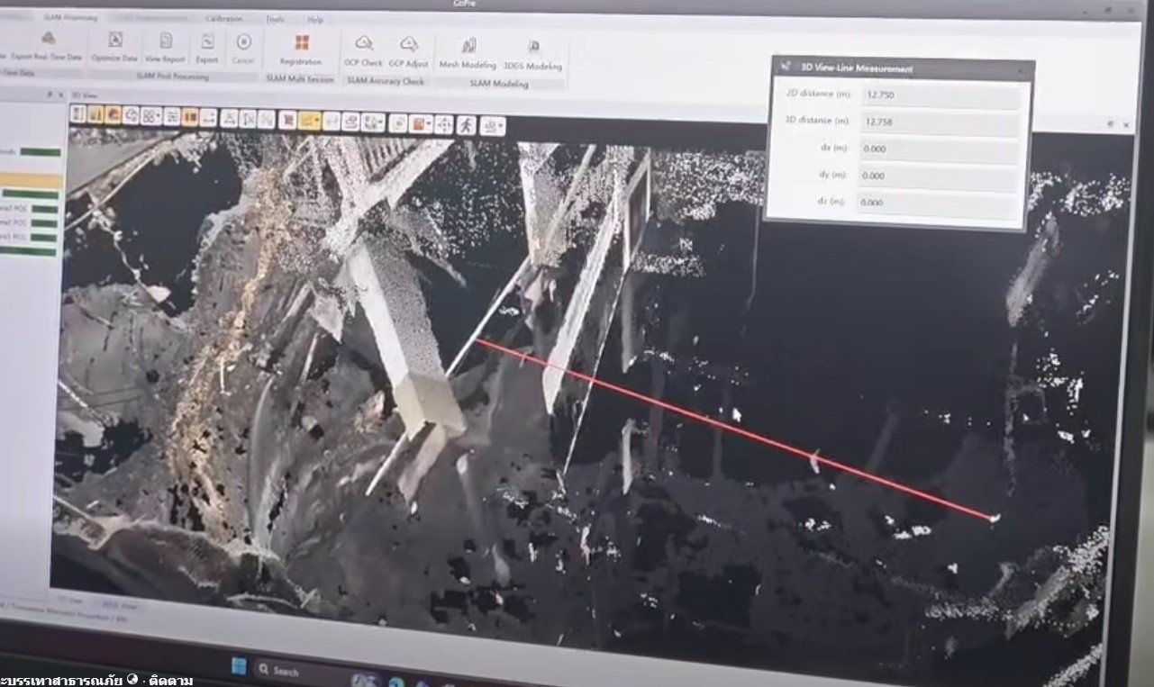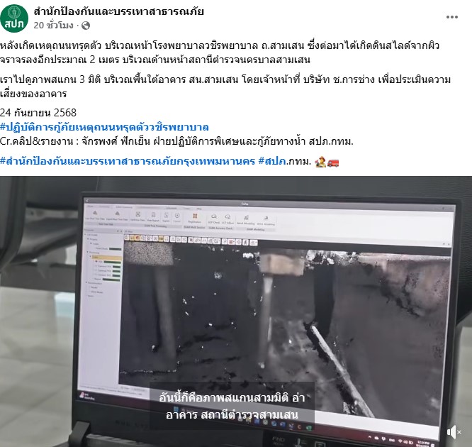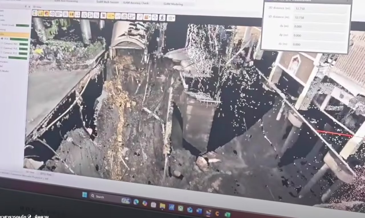 ซึ่งต่อมาได้เกิดดินสไลด์จากผิวจราจรลงอีกประมาณ 2 เมตร บริเวณด้านหน้าสถานีตำรวจนครบาลสามเสนเราไปดูภาพสแกน 3 มิติ