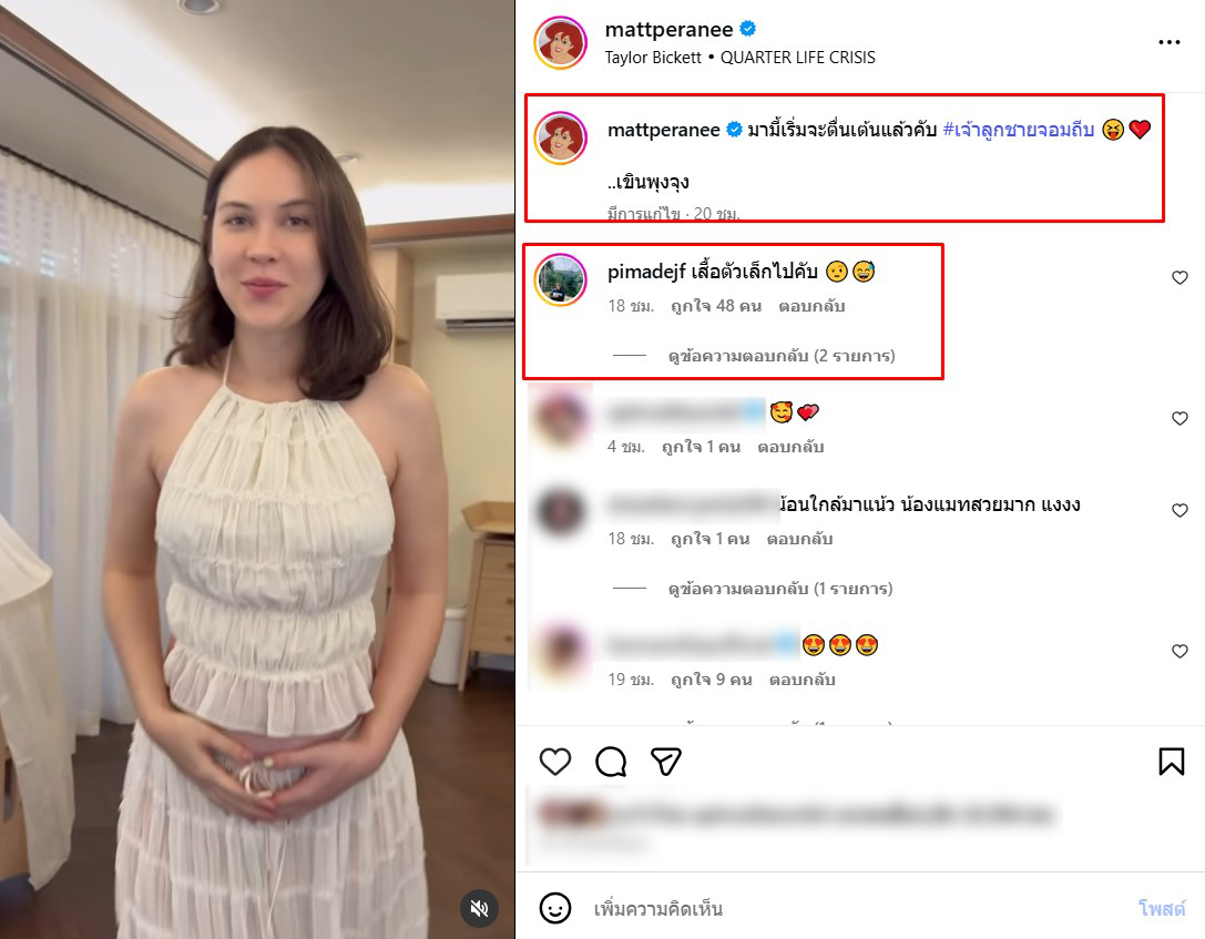 อย่างล่าสุด แมท ก็ได้ออกมาโพสต์คลิปอัปเดตท้องที่ค่อยๆโตขึ้นเรื่อยๆ ในขณะที่ใส่ชุดเดิม