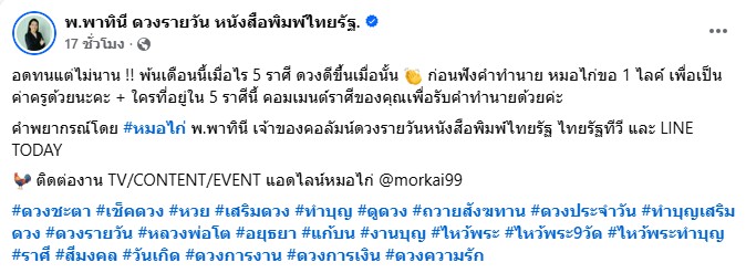 โดย หมอไก่ ทำนายว่า ” อดทนแต่ไม่นาน !! พ้นเดือนนี้เมื่อไหร่ 5 ราศี ดวงดีขึ้นเมื่อนั้น 👏 ”