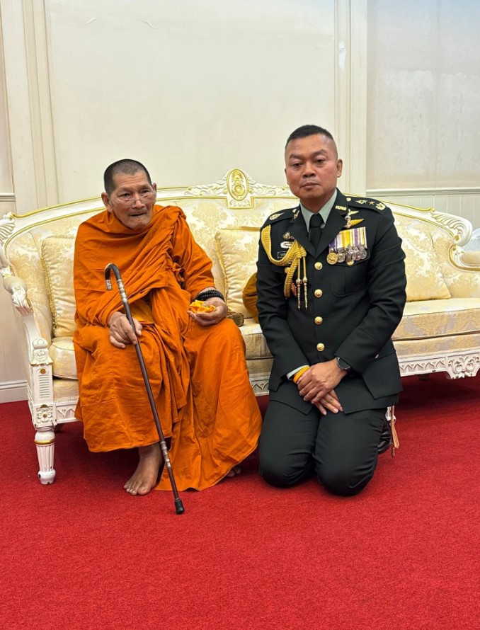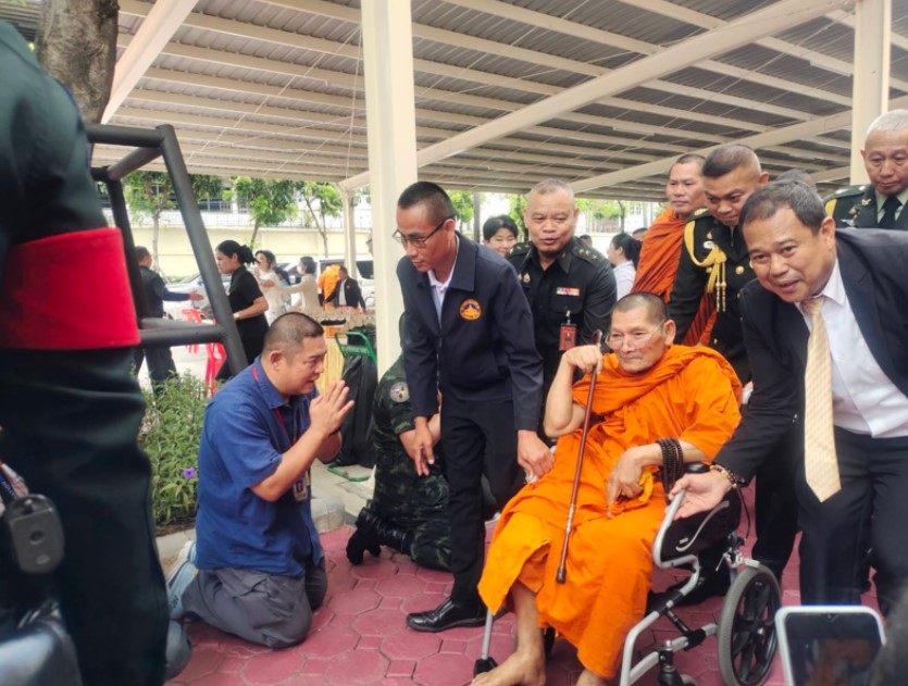 เดินลงมาร่วมส่ง หลวงปู่ศิลา เพื่อเดินทางกลับ หลังเสร็จพิธีสงฆ์ที่ทางกองทัพบกจัดขึ้น เพื่ออุทิศส่วนกุศลแด่กำลังพลทั้ง 16 นาย ที่เสียชีวิตจากการปะทะไทย-กัมพูชา