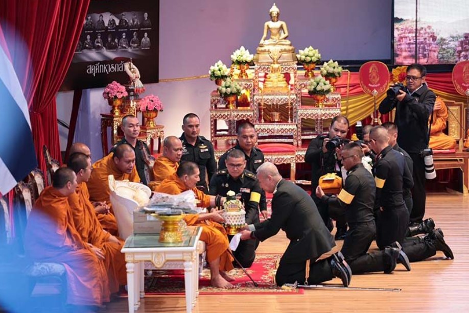 โดยมี พระราชวัชรธรรมโสภณ (ศิลา สิริจนฺโท หรือ หลวงปู่ศิลา) วัดพระธาตุหมื่นหิน จ.กาฬสินธุ์ และคณะประกอบพิธีสงฆ์ ได้แก่ การสวดพระพุทธมนต์ การถวายภัตตาหารและเครื่องไทยธรรม พร้อมทอดผ้าบังสุกุล