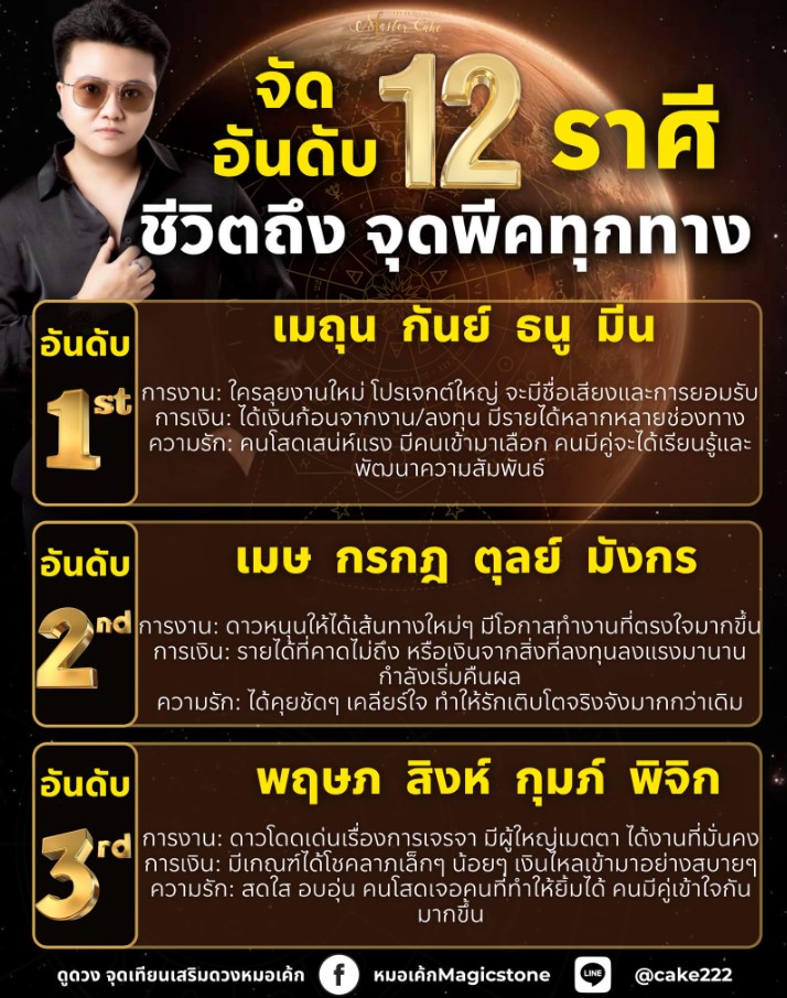 อย่างล่าสุด หมอเค้ก ก็ได้ออกมาจัดอันดับ 12 ราศี ชีวิตถึงจุดพีคทุกทาง ว่าแต่ชาวราศีไหนจะอยู่อันดับที่เท่าไหร่กันบ้างไปเช็กกันเลยค่ะ