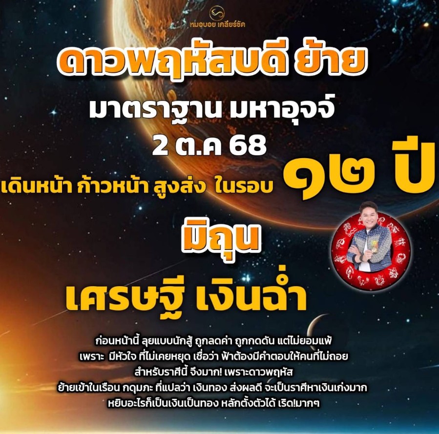 โดย หมอบอย ทำนายว่า “ดาวพฤหัสบดี ย้าย เป็น มหาอุจจ์ 12 ราศีจะไปในทิศทางไหน❗️