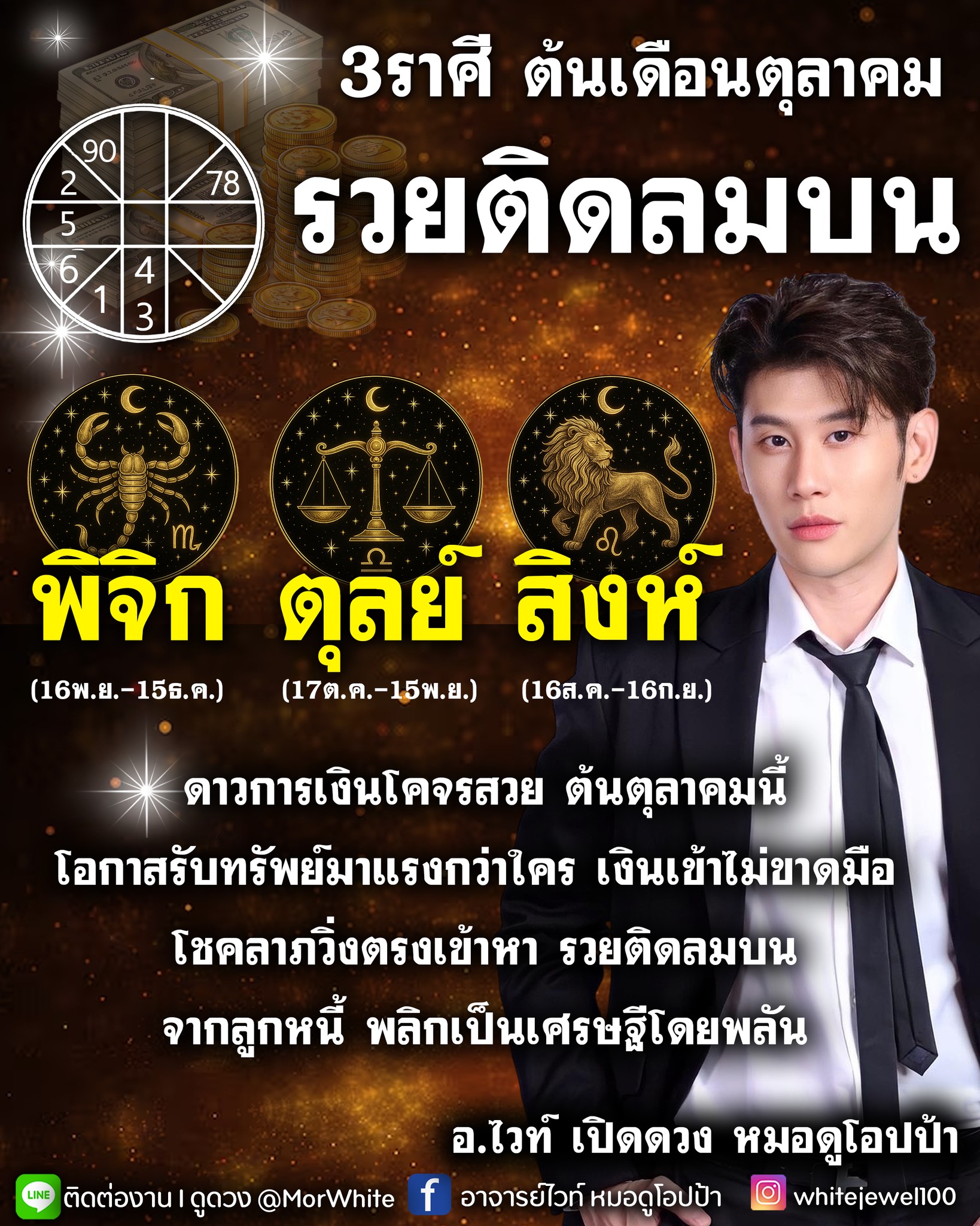 ล่าสุด หมอไวท์ เปิดดวง 3 ราศี ต้นเดือนตุลาคม รวยติดลมบน พิจิก (16 พ.ย.-15 ธ.ค.)
