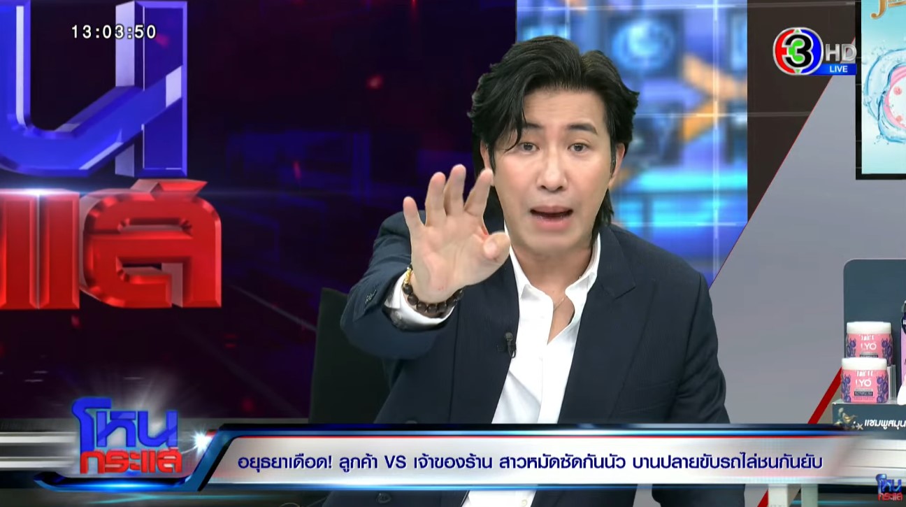 ล่าสุด ทำเอา พี่หนุ่ม เริ่มจะมีหือมีอือขึ้นมาบ้างแล้ว เนื่องจาก ในรายการโหนกระแส ระหว่างที่กำลังพูดคุยในเรื่องของ อยุธยาเดือด! ลูกค้า VS เจ้าของร้าน สาวหมัดซัดกันนัว อยู่นั้น