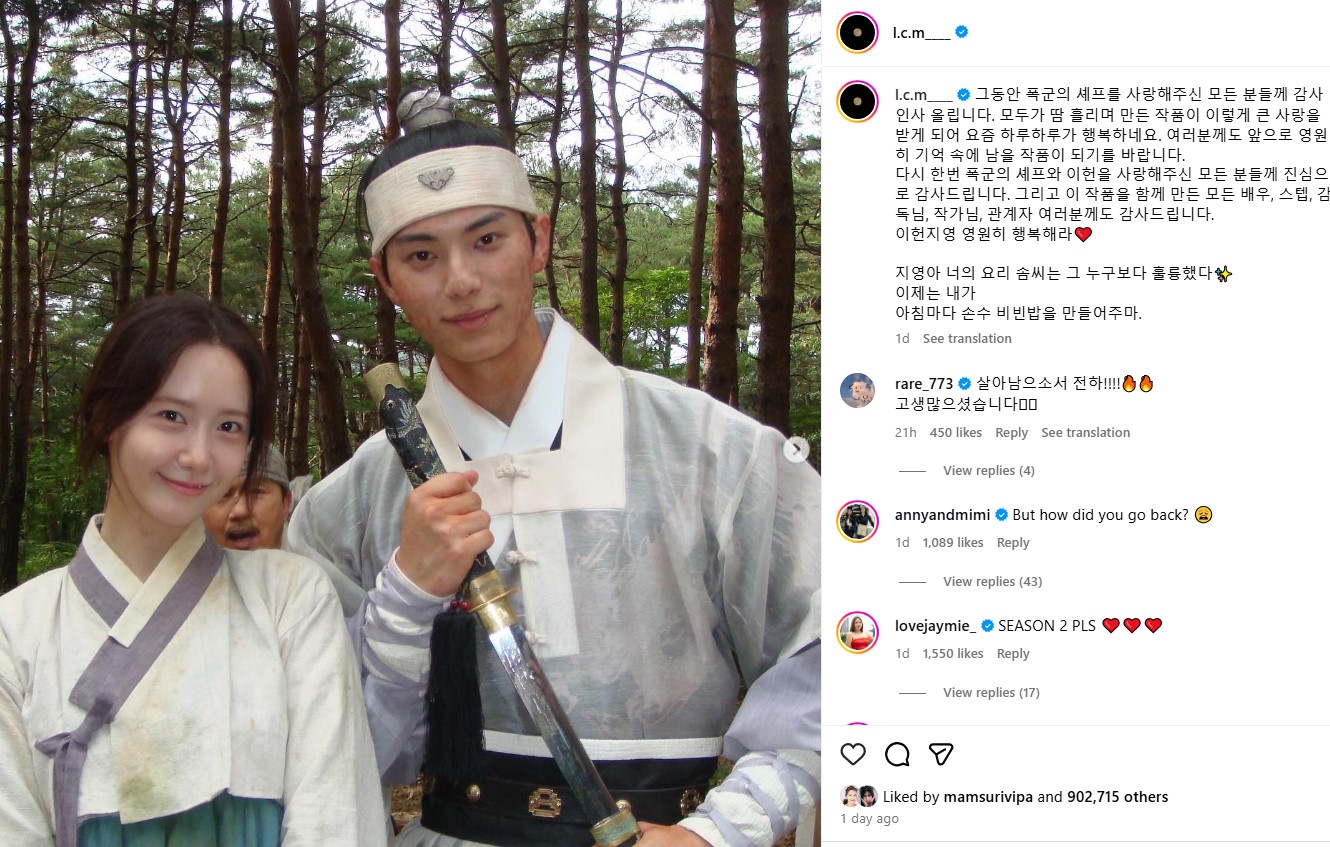 ล่าสุด ทางด้าน Lee Chae Min ก็เพิ่งมาโพสต์ภาพเก็บตกจากกองถ่าย รวมทั้งความรู้สึกถึงซีรีส์เรื่องนี้ผ่านไอจีว่า“ขอขอบคุณทุกคนที่รัก Bon Appétit, Your Majesty ตลอดมา