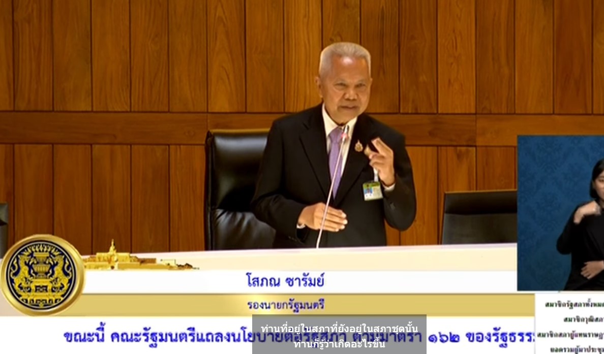 โดยวันนี้ 30 กันยายน 2568 ที่รัฐสภา นายโสภณ ซารัมย์ รองนายกรัฐมนตรี และ สส.บุรีรัมย์ พรรคภูมิใจไทย ได้ลุกขึ้นชี้แจง ต่อที่ประชุมรัฐสภา ว่า ตนฟังคำอภิปรายมาทั้ง 2 วัน ซึ่งเรื่องการจัดทำนโยบายเป็นเรื่องที่ต้องพิสูจน์ในอนาคตและผู้อภิปรายหลายคนก็หยิบยกหลายนโยบายขึ้น มาว่ามีเรื่องที่ไม่ควรทำ
