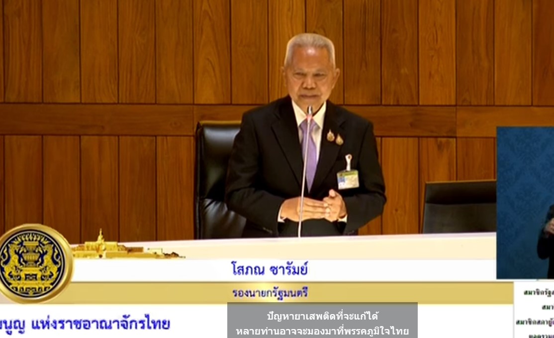 ทั้งนี้สิ่งที่ตนจะชี้แจงต่อสภาคือเรื่องปัญหายาเสพติด และเมื่อวาน (29 ก.ย.68) ตนได้นั่งฟังมาตลอดมีเพื่อนสมาชิก ได้ให้ความสนใจและเป็นห่วงเป็นใยเรื่องการแก้ไขปัญหายาเสพติดหลายคน และตนก็ทราบดีว่า ประชาชนทุกคนก็ทราบถึงปัญหายาเสพติดเป็นอย่างดีโดยเฉพาะอย่างยิ่ง