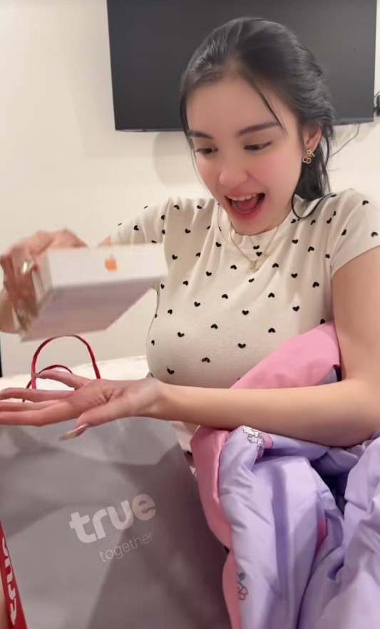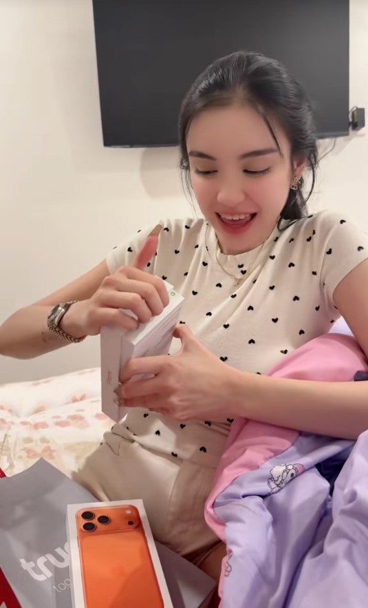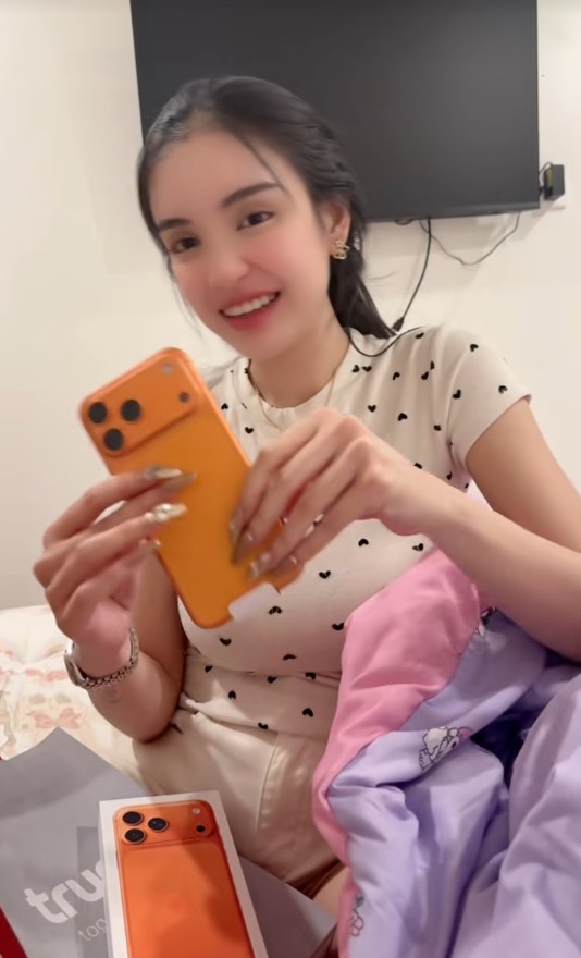 ด้วยการซื้อไอโฟนรุ่นใหม่ล่าสุดให้กับขนมและได้ซื้อของตัวเองมาใหม่สีเดียวกัน เป็นคู่กัน พร้อมข้อความว่า “แต่ละมื้อแต่ละเด 😂🧡 ระนะจุบุๆ”
