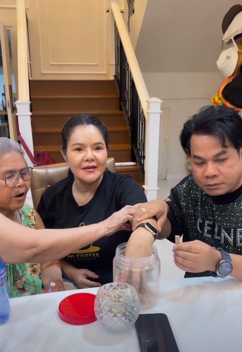 จากนั้น ฮาย คุณแม่ แล้วก็ ยิ่งยง ก็ได้ชวนกันจุดธูปหาเลขเด็ด เพื่อนำมาให้แฟนๆได้เสี่ยงโชคกัน