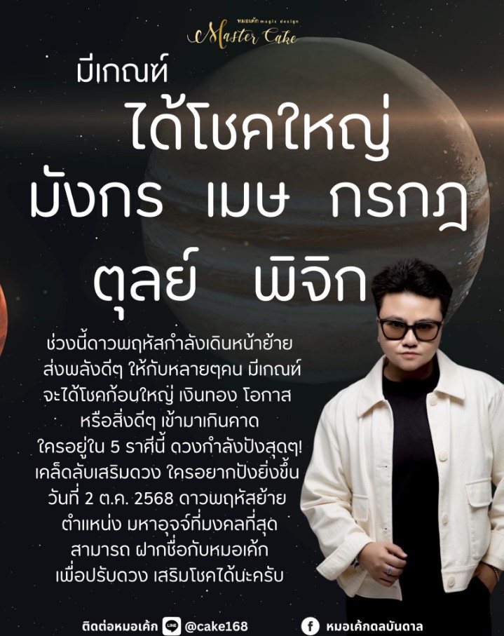 ดาวพฤหัสย้ายตำแหน่ง มหาอุจจ์ที่มงคลที่สุด สามารถฝากชื่อกับหมอเค้กเพื่อปรับดวง เสริมโชคได้”