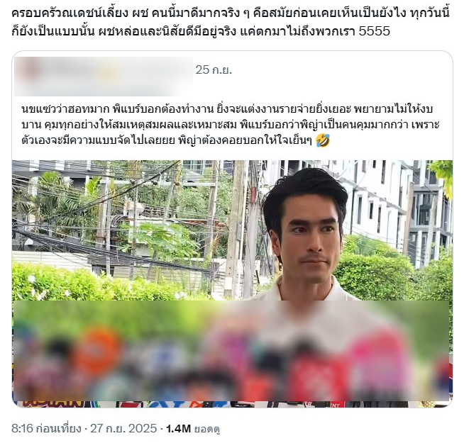 โดยเริ่มจาก…ครอบครัวณเดชน์เลี้ยง ผช คนนี้มาดีมากจริง ๆ คือสมัยก่อนเคยเห็นเป็นยังไง ทุกวันนี้ก็ยังเป็นแบบนั้น ผชหล่อและนิสัยดีมีอยู่จริง แค่ตกมาไม่ถึงพวกเรา 5555