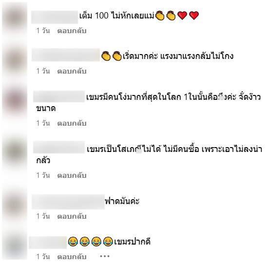 คอมเมนต์กันรัวๆเลยว่า เต็ม 100 ไม่หักเลยแม่👏👏❤️❤️ , 👏👏เริ่ดมากค่ะ แรงมาแรงกลับไม่โกง , เขมรมีคนโง่มากที่สุดในโลก 1ในนั้นคือxึงค่ะ จั๋ดง๊าวขนาด , เขมรเป็นโสเภxีไม่ได้ ไม่มีคนซื้อ เพราะเอาไม่ลงน่ากลัว , ฟาดมันค่ะ