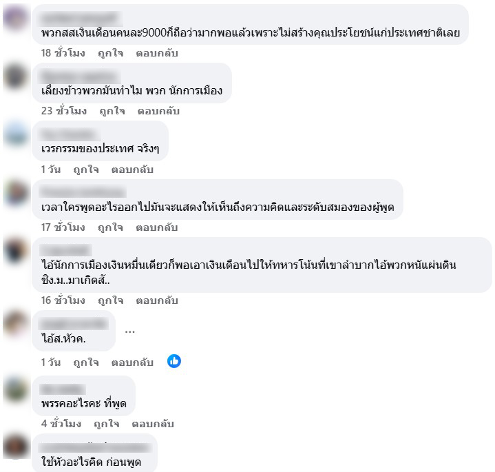 ท่ามกลางชาวเน็ตที่เข้ามาคอมเมนต์กันเพียบว่า “เลี้ยงข้าวพวกมันทำไม พวก นักการเมือง,เวรกรรมของประเทศ จริงๆ”