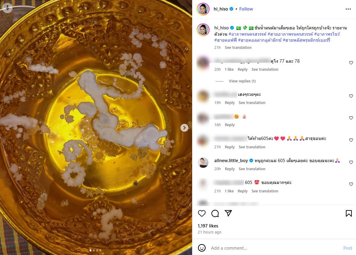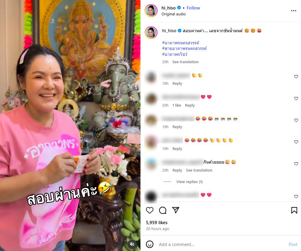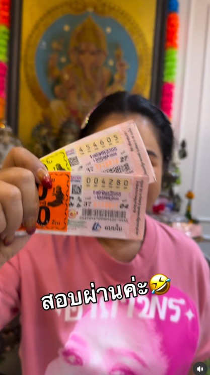 ต่อมา ฮาย ได้โพสต์คลิปหลังหวยออก กับแคปชั่นสั้นๆว่า “สอบผ่านค่า…. เลขจากขันน้ำมนต์”